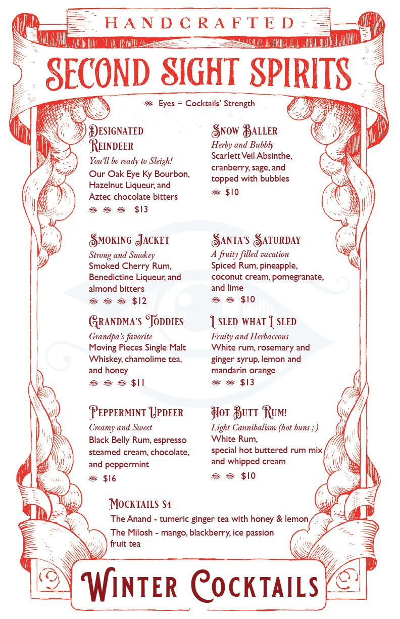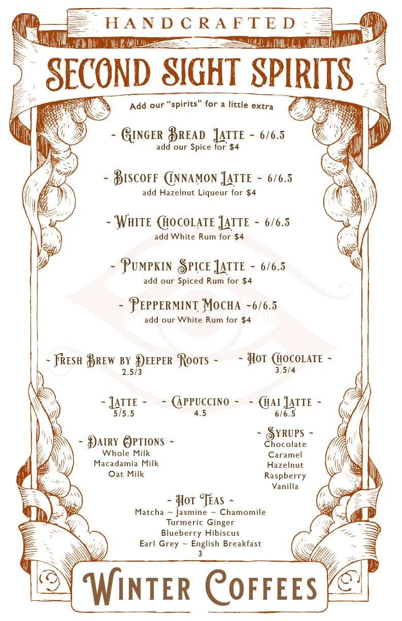 Drinks and tastings offered 9am-6pm Friday and Saturdays and 9am-5pm on Sundays with a seasonal menu of drinks all created by our lovely staff.
